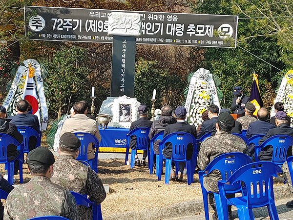 [전남동부보훈지청]=전남동부보훈지청(지청장 김영진)은 지난 11월 14일 구례군 산동면 소재 ‘백인기대령추모비’ 앞에서 자유와 평화를 지키기 위해 고귀한 생명을 바친 故백인기 대령의 넋을 추모하고 숭고한 호국정신을 후세에 알리고자 ‘제9회 백인기 대령 추모제’를 개최했다.