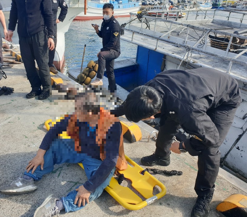 - 서귀포해양경찰서(서장 도기범)는 오늘(24일) 오전 11시 35분경 서귀포항에 정박 중인 어선 S호(29톤, 서귀포, 연승) 선원실에 가스 유출로 질식되어 쓰러진 A씨(남, 62세)와 베트남인 B씨(남)를 구조하였다고 밝혔다. -