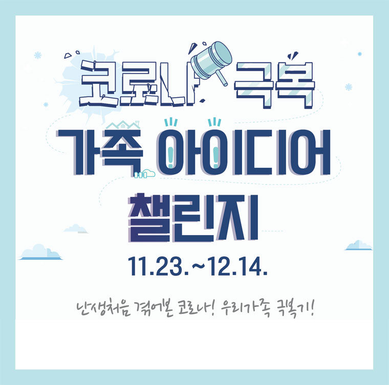 [한국청소년활동진흥원]=한국청소년활동진흥원(이사장 이광호)은 ‘코로나 극복 가족 아이디어 챌린지’공모전을 오는 12월 14일까지 진행한다. 이번 공모전은 코로나19 장기화로 겪었던 어려움을 가족이 함께 극복했던 다양한 사례를 모아 전 국민이 공유, 사회에 활력을 불어넣기 위한 취지로 추진된다.