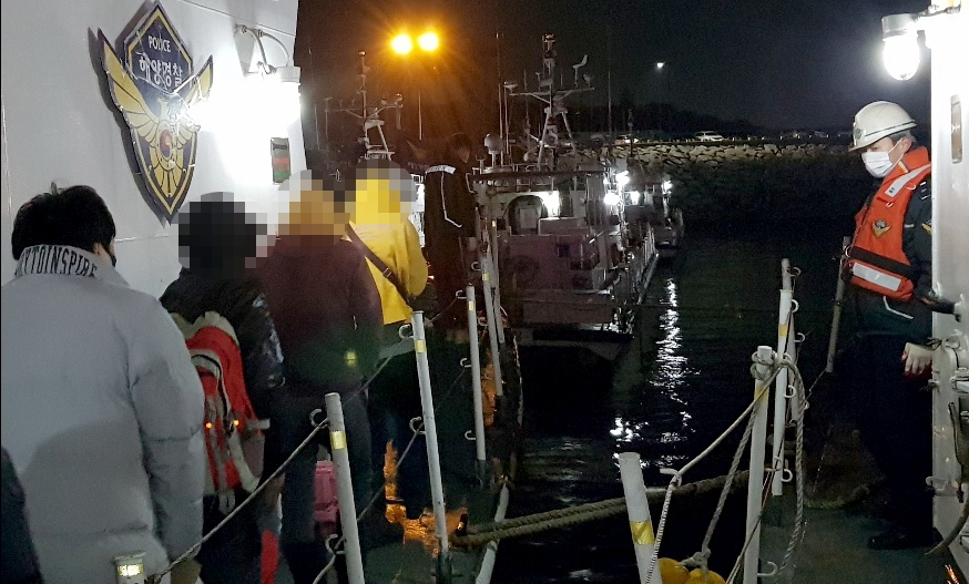 신고 접수 즉시 인근에서 해상 순찰 중이던 경비함정 113정을 현장에 출동시켜 검문검색을 실시한 결과 외국인 선원 3명(베트남 국적)이 불법체류자로 확인되어 검거했다.