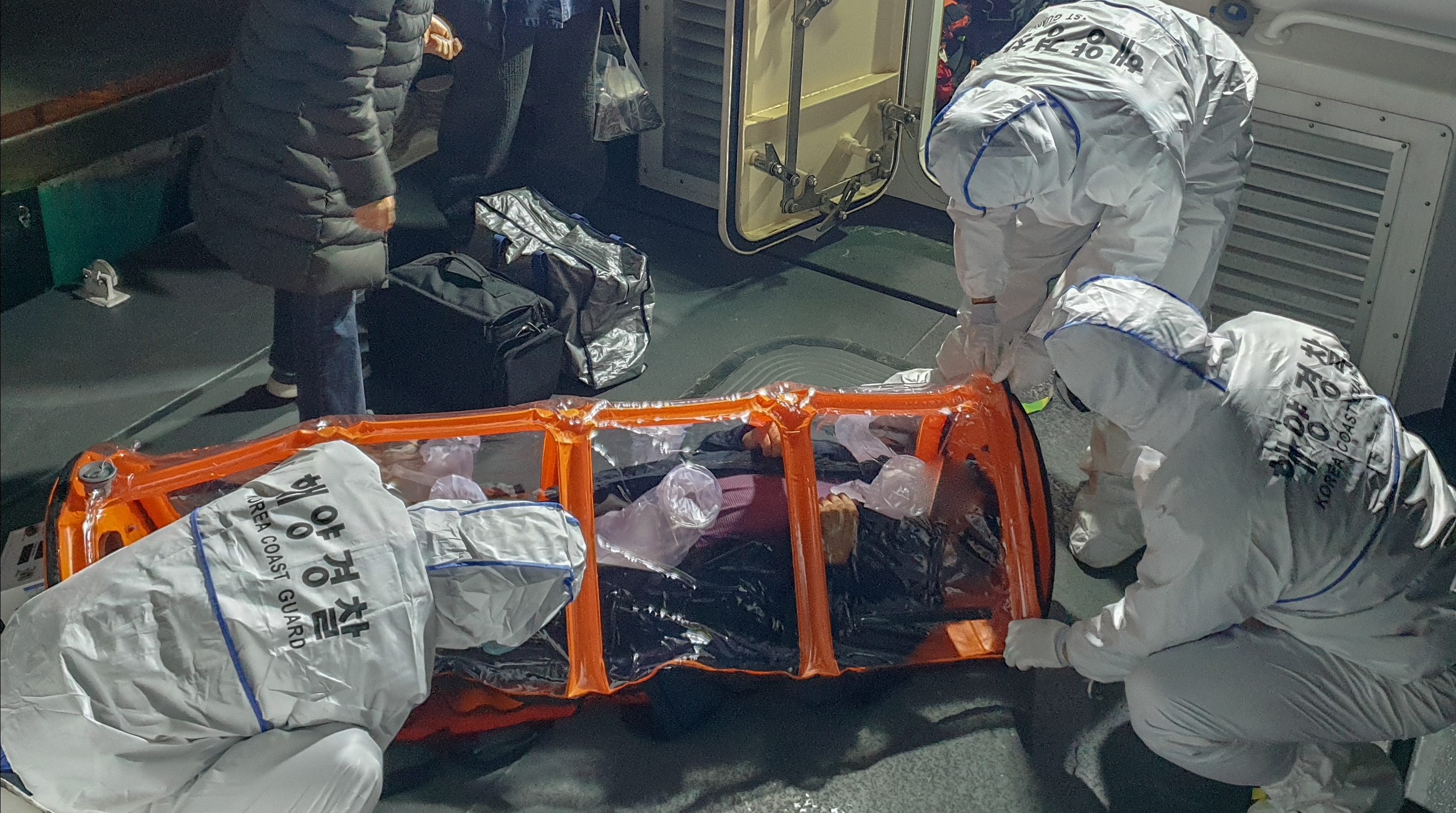 환자가 최근 서울에 다녀온 적이 있고 발열 및 오한 등 코로나19가 의심되는 임상증상을 보인다는 보건지소장의 의견에 따라 여수해경은 감염예방장비(음압들것)을 이용하여 환자를 이송하였으며, 같은 날 오후 8시경 녹동항에서 119에 인계해 고흥군 소재 병원으로 긴급 이송하였다.