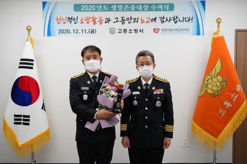 사진 설명 전남소방본부 고흥소방서 소방경 이형우가 생명보험사회공헌재단이 주관하는 ‘2020년 생명존중대상’을...
