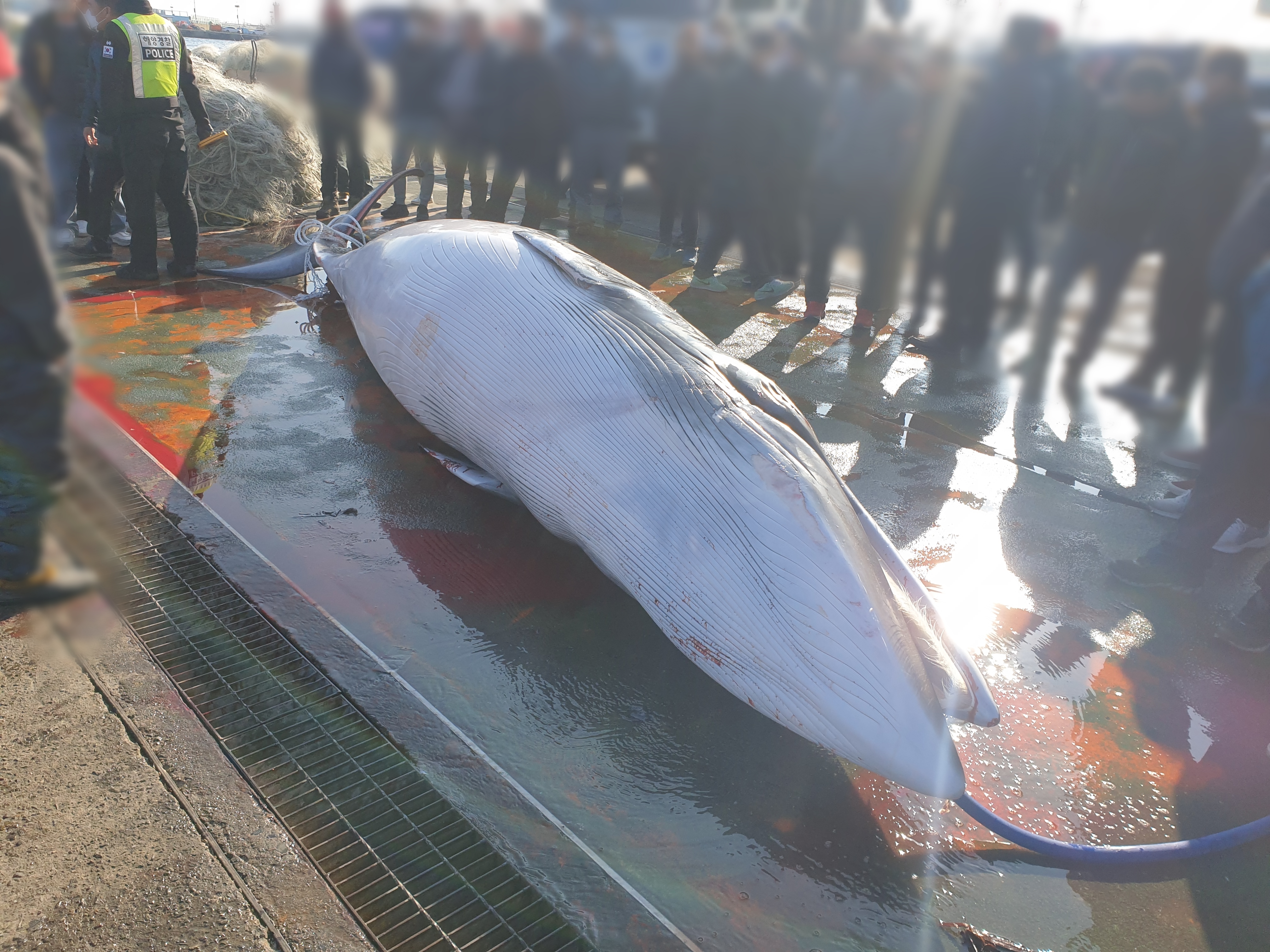 - 포항해양경찰서는 12일(토) 구룡포 남동방 16km 해상에서 자망어선 A호(7톤급)가 그물에 걸려 죽은 길이 5.6m 둘레 2.8m 밍크고래를 혼획했다고 밝혔다. -
