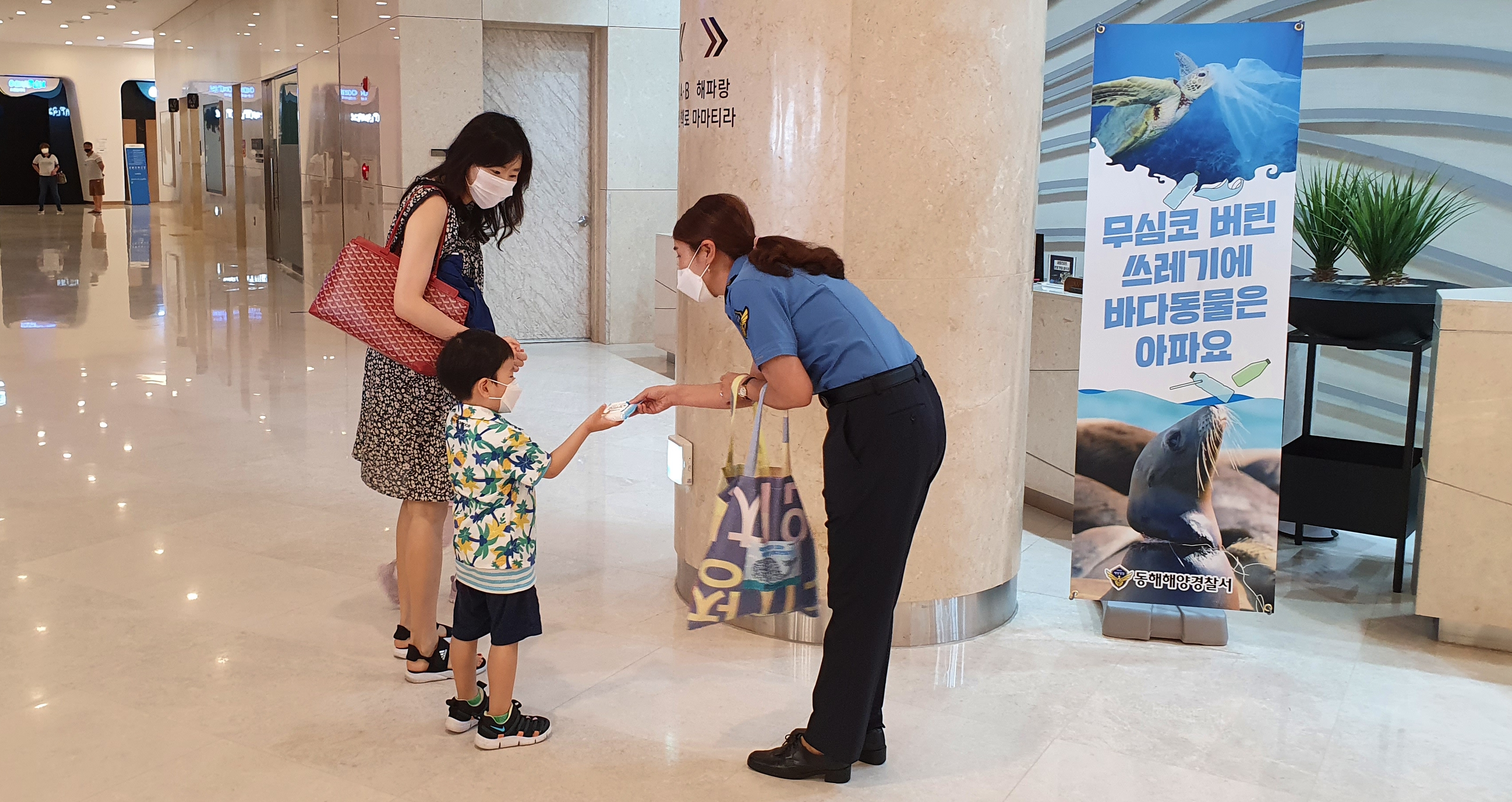 최근 미세플라스틱 등 해양쓰레기 문제가 심각해짐에 따라 동해해경에서「해양쓰레기 줄이기 실천운동」을 중점과제로 채택하여 추진하고 있으며, 그 일환으로 관광객이 많이 찾는 지역에 해양환경 관련 배너를 설치하고 관내 낚시동호회와 협업하여 현수막 설치와 홍보물 배부 등을 통해 캠페인 참여를 독려하고 있다.