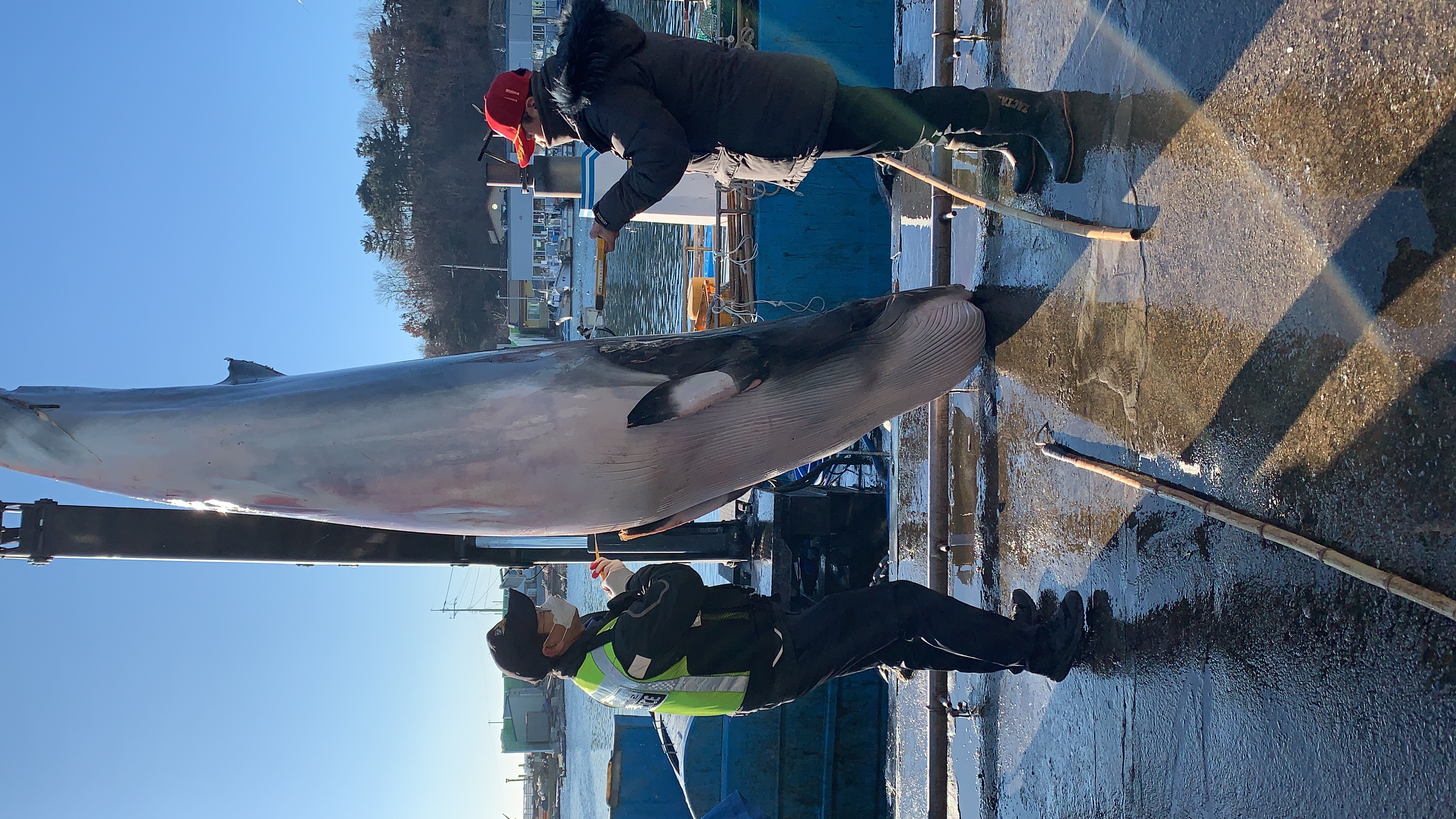 혼획된 밍크고래는 무게 0.6톤, 둘레 2m1cm, 길이 3m96cm로 추정된다.