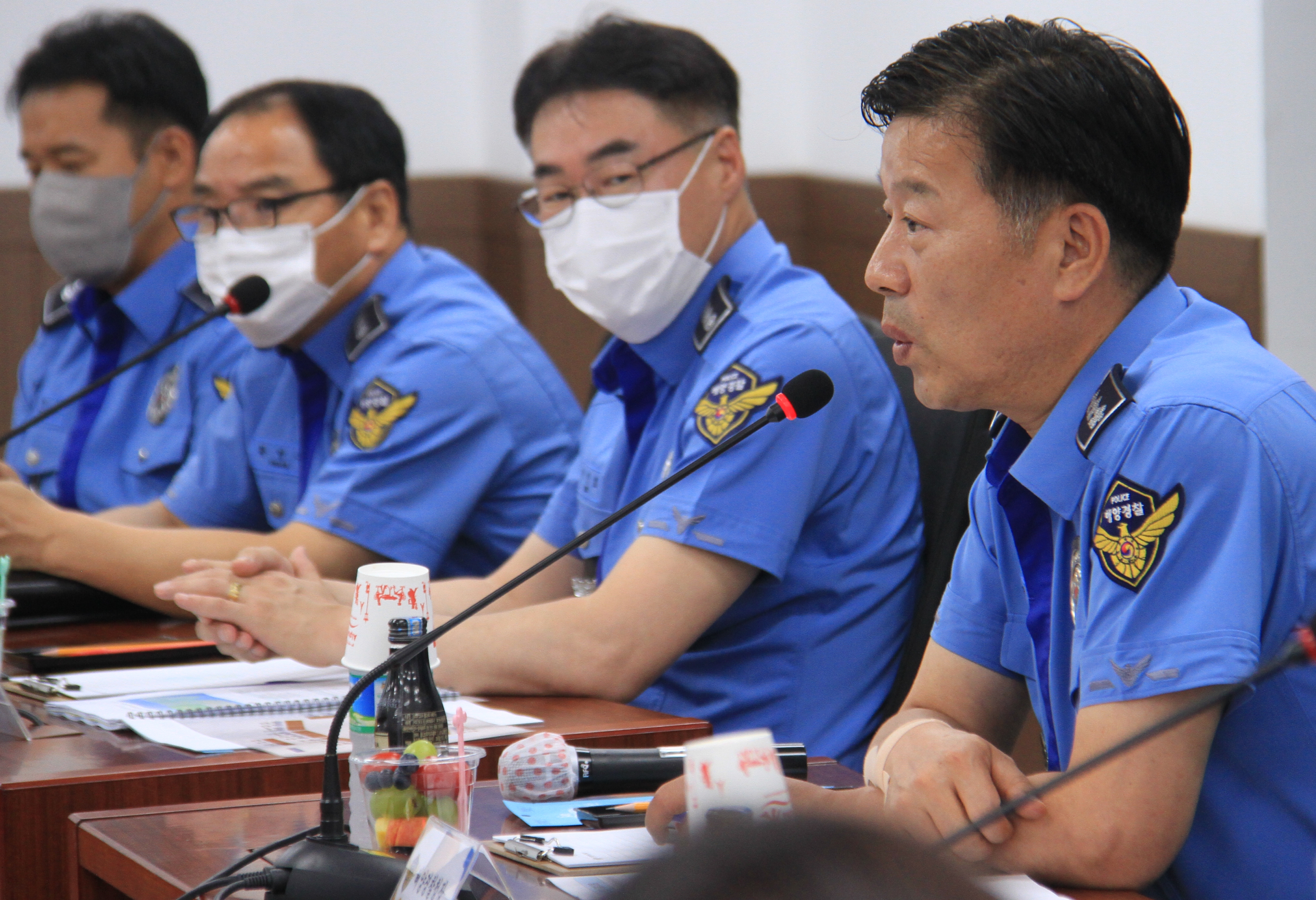 김홍희 청장은 먼저 경찰서에 방문하여 포항해양경찰서 직원들과 자유로운 소통의 장을 마련하여 다양한 의견을 나누고 특히, 국민들이 체감할 수 있고 해양경찰 발전을 위한 적극행정 활성화를 강조했다.