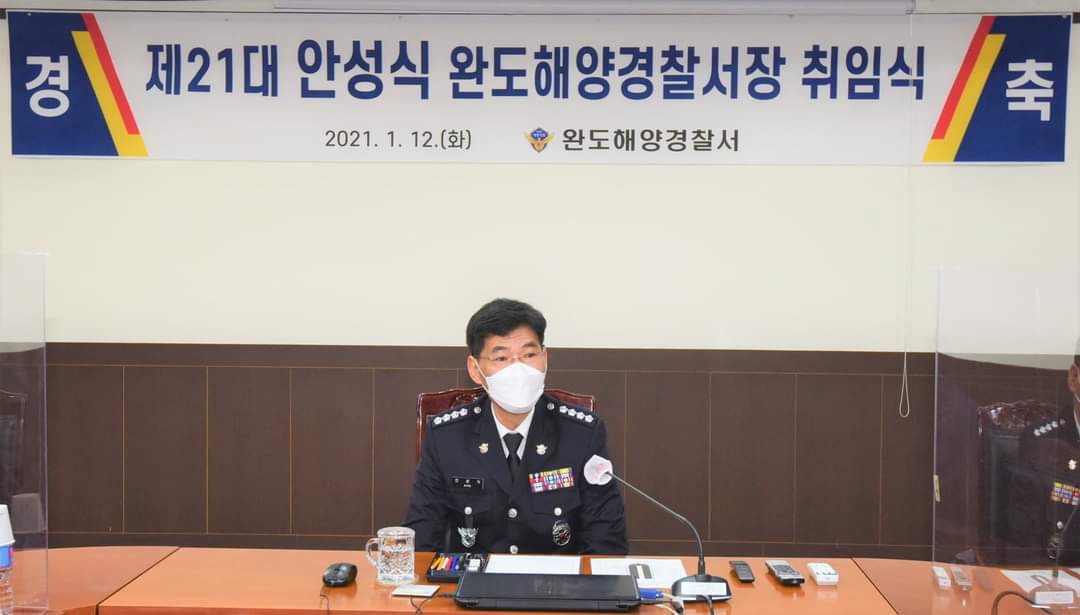 - 완도해양경찰서(서장 안성식)는 12일 제 21대 안성식 서장 취임식을 갖고 본격적인 업무에 돌입한다고 밝혔다. -