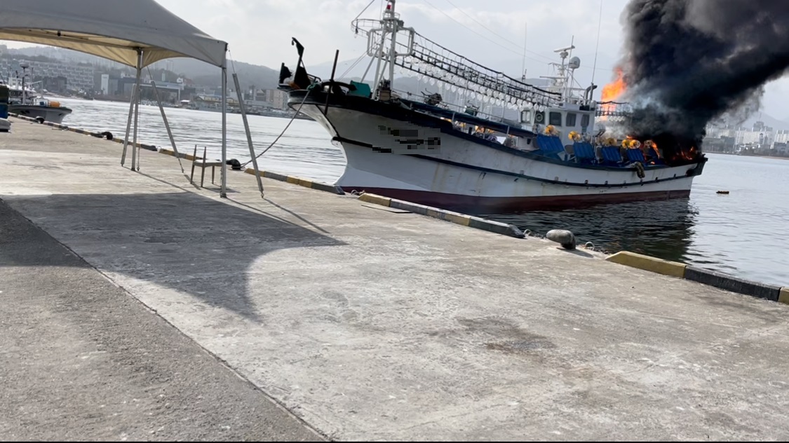 속초해경에 따르면, 사고 선박은 선미에 있던 오징어 조상기(오징어 낚시 중 기계적으로 감거나 내리는 일을 되풀이하여 오징어를 잡는 자동 어구)와 선미 일부가 탔으며, 선박 외벽과 외판에는 이상이 없는 것으로 확인됐다.