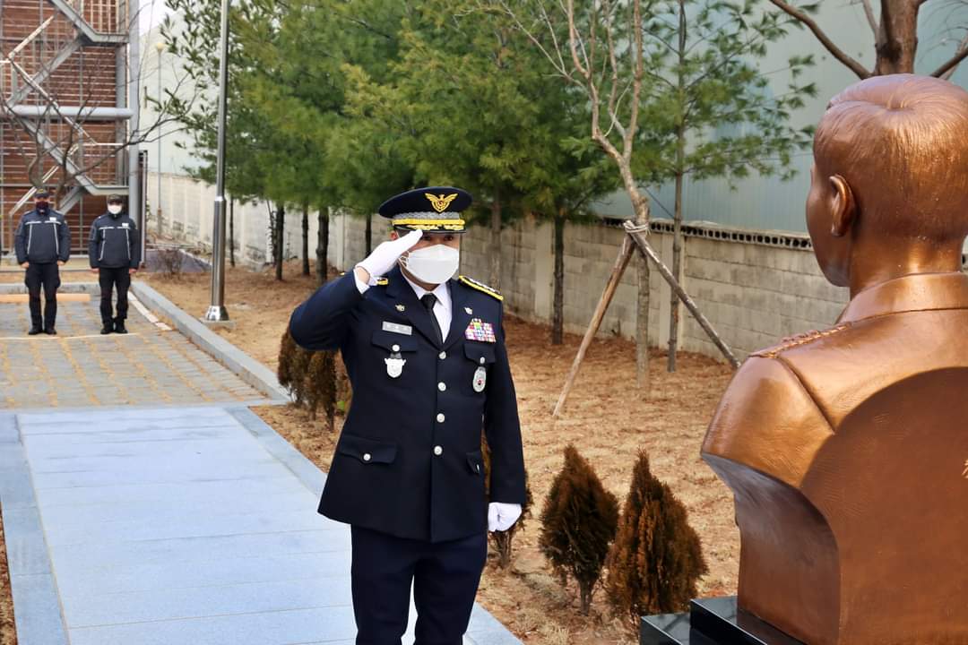 이어 통영연안 VTS에 있는 故정호종 경장의 흉상을 찾아 참배하며 숭고한 희생정신과 바다를 수호하는 사명감이 헛되지 않게 해양주권수호 의지를 다짐하였습니다.