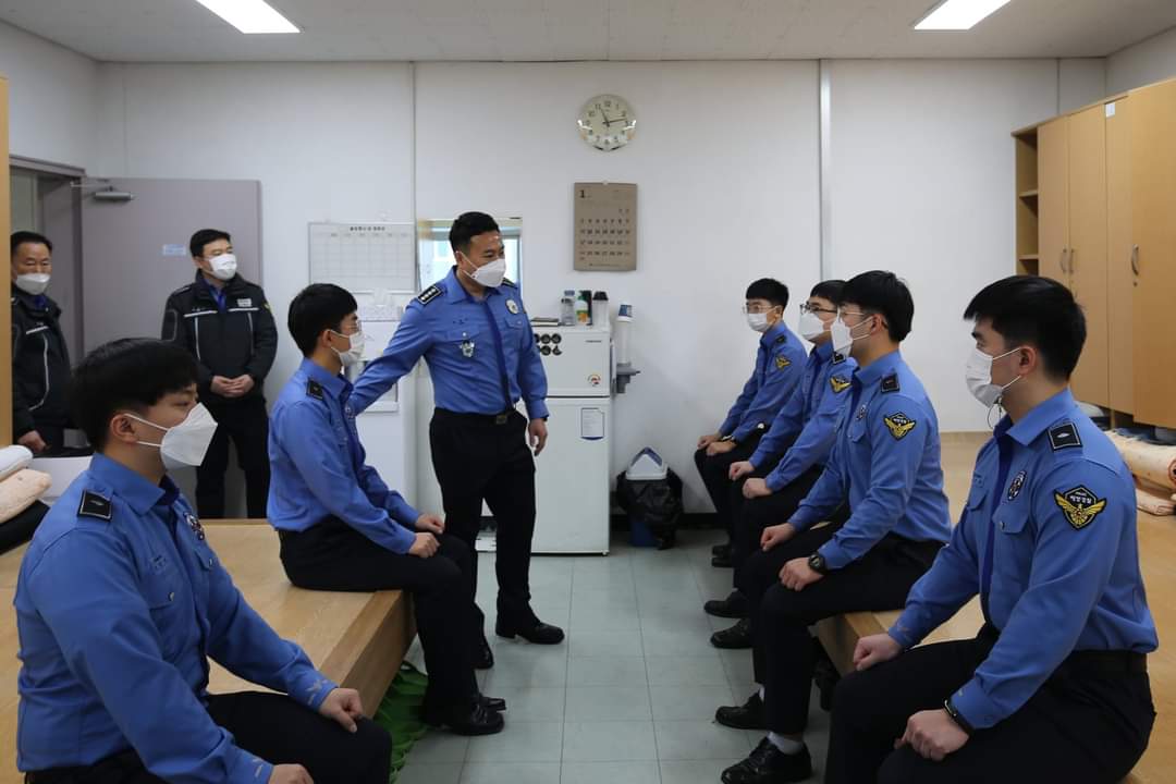 - 양종타 신임 서장은 코로나 19 확산에 따른 사회적 거리두기를 위해 별도의 취임식 없이 종합상황실에서 해상치안 상황 보고를 받고 부서별 직원들과 인사를 나누었습니다. -