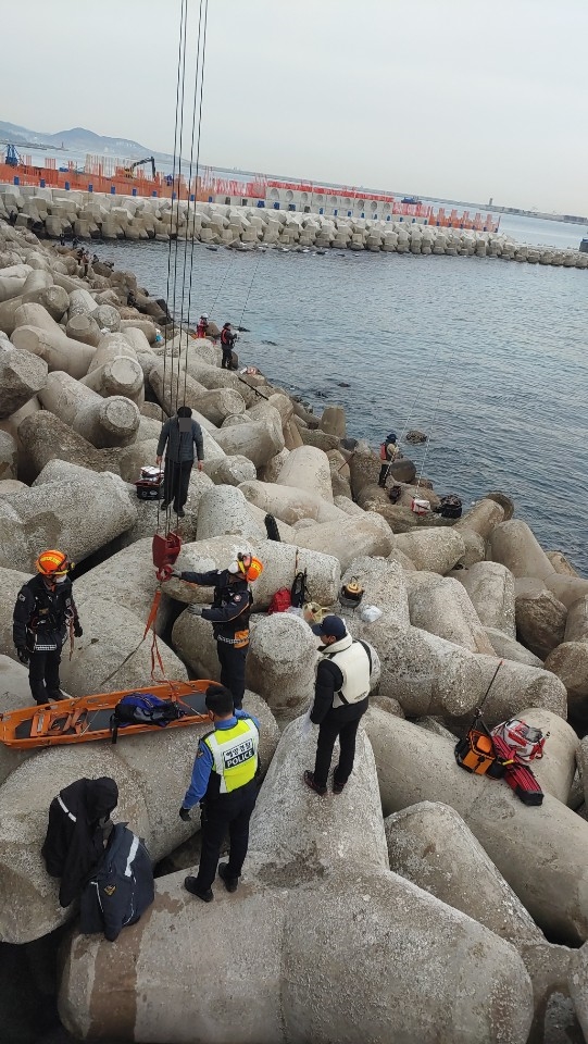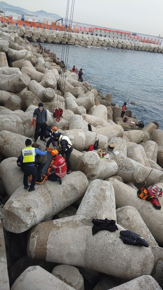 - 동해화력발전소 동방파제 테트라포드 추락 50대 낚시객 무사히 구조 -