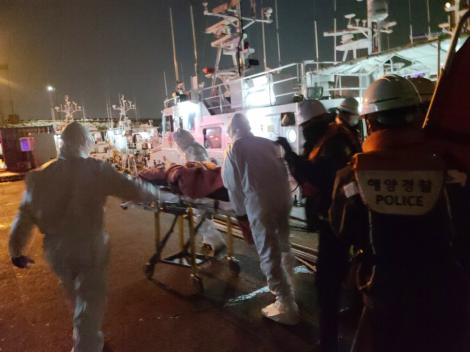 현장에 도착한 하늘바다 파출소 연안구조정은 감염병 예방 방역 검사 후 응급환자를 옮겨 태우고 영종도 왕산마리나에 대기 중인 119 구급대에 인계했다.