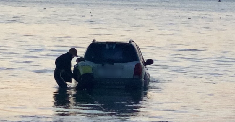 다행히 침수 차량에 탑승자가 없음을 확인한 해경은 로프와 견인차를 이용하여 차량을 안전한 곳으로 견인했다.