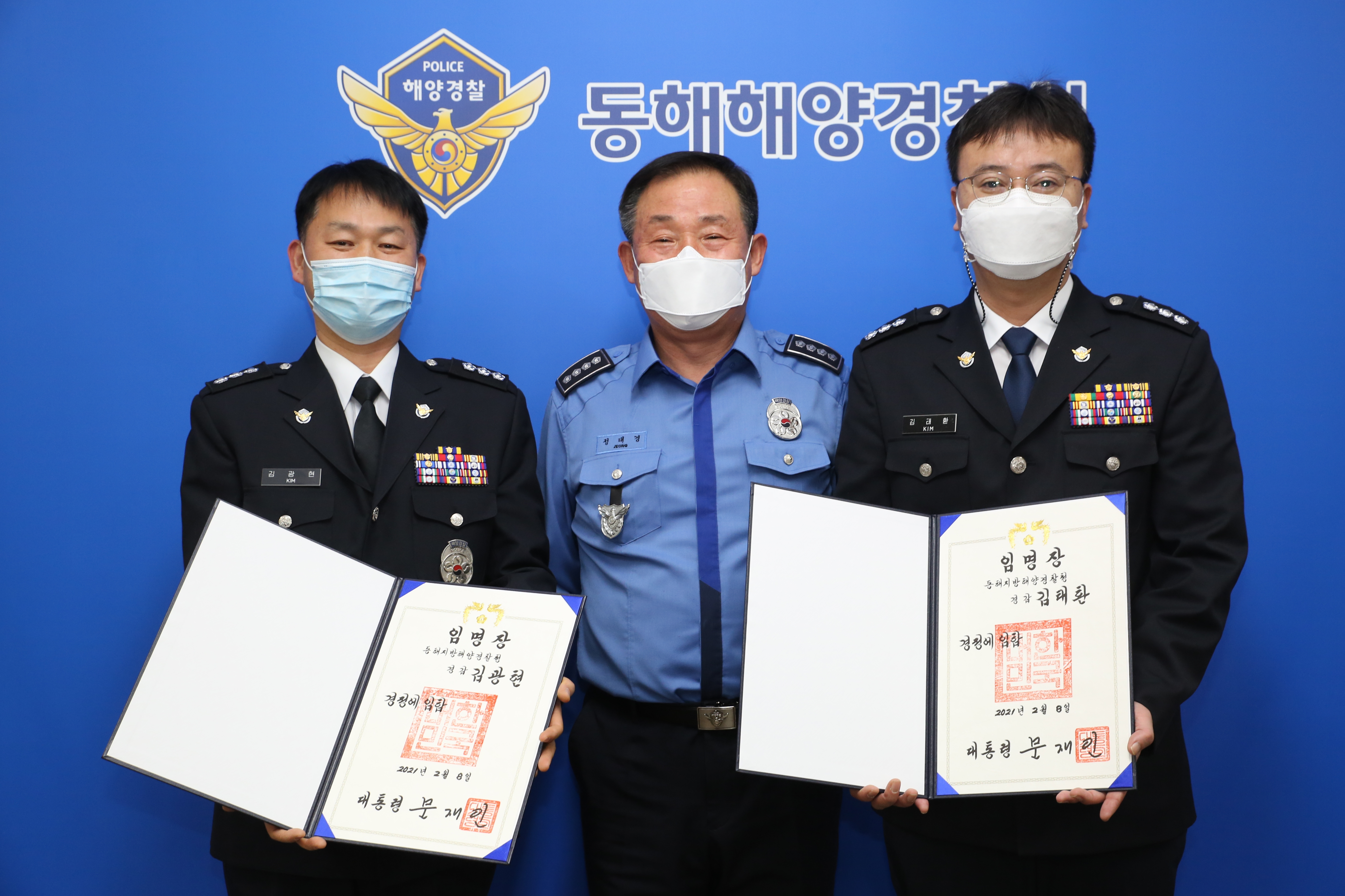 동해해경 정태경 서장은 승진자에 대한 임명장 및 계급장을 수여하고 “영예로운 승진을 축하드리며, 무거워진 어깨만큼 앞으로도 국민과 조직을 위해 책임감을 가지고 안전한 바다 만들기에 최선을 다해주길 바란다.”라고 말했다.