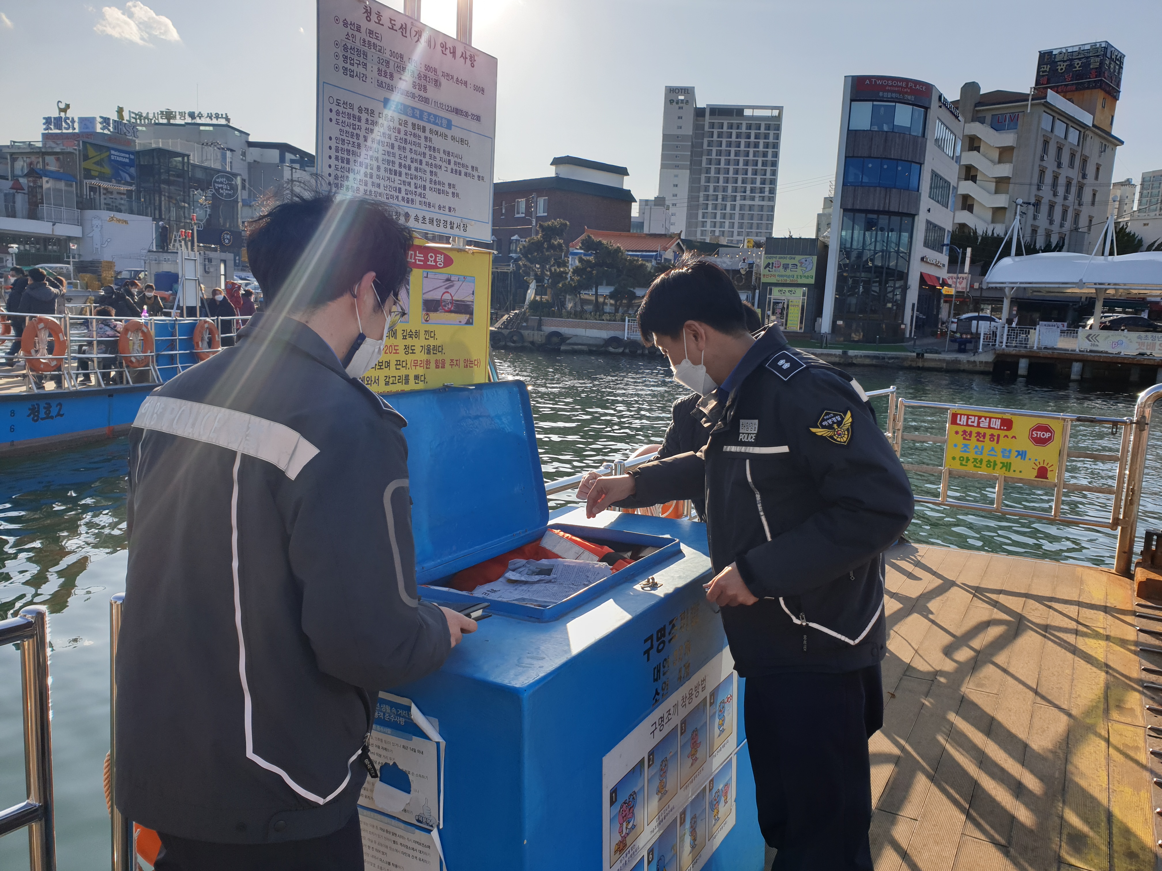 속초해양경찰서(서장 서영교)는 2. 8 ~ 9일까지 2일간 설 명절 연휴를 대비하여 관내 다중이용선박(도선) 및 주요 수상레저사업장 현장점검에 나섰다고 9일 밝혔다.