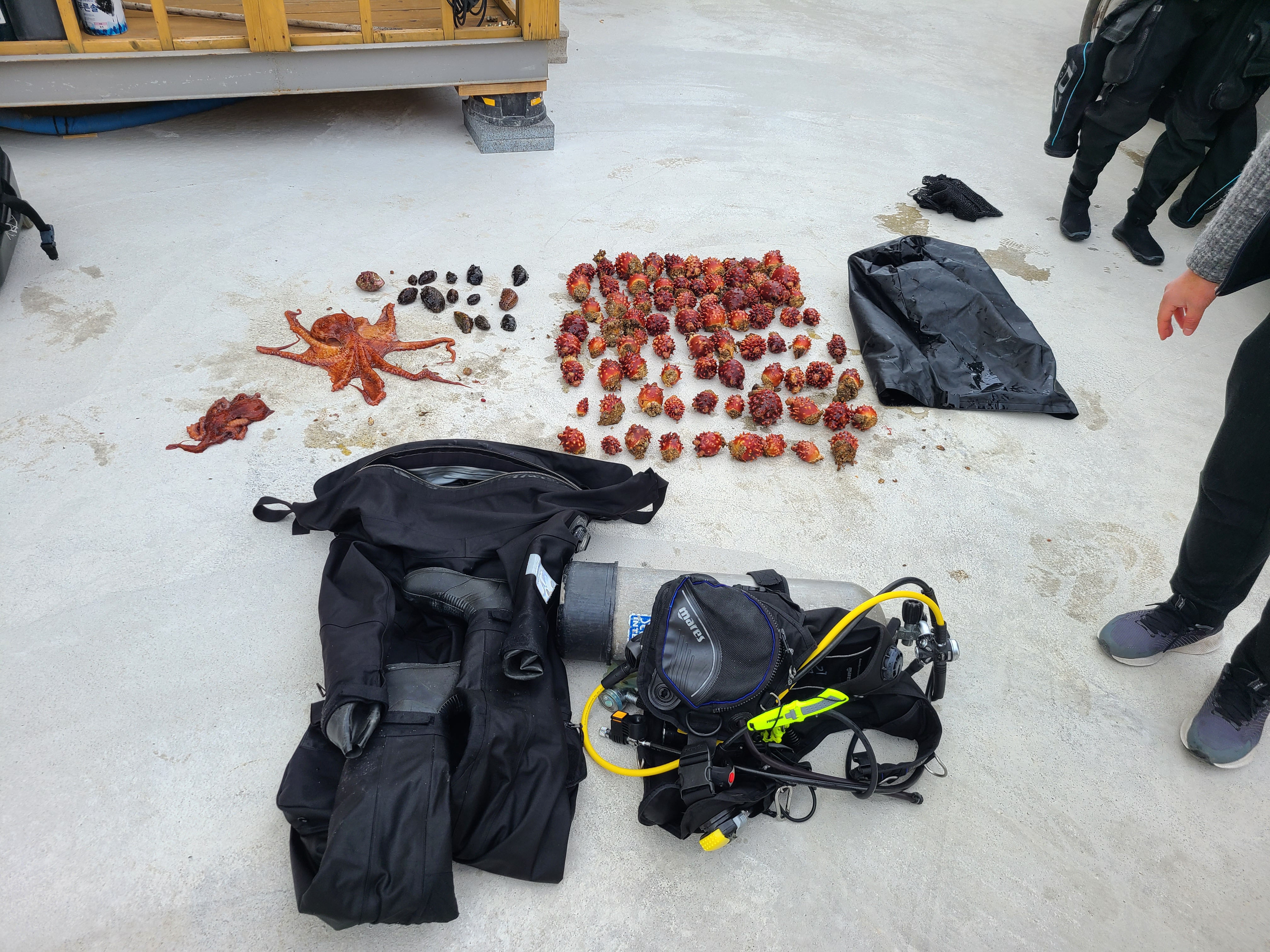 김모씨 등 2명은 수산자원관리법 제18조에 따라 비어업인은 허용된 방법 이 외의 방법으로 수산자원을 포획·채취하여서는 아니 됨에도 불구하고 허용되지 않은 방법인 잠수용 스쿠버 장비를 착용하고 입수하여 멍게 163마리, 해삼 33마리, 문어 3마리 등 약 200마리를 불법으로 채취하였다.