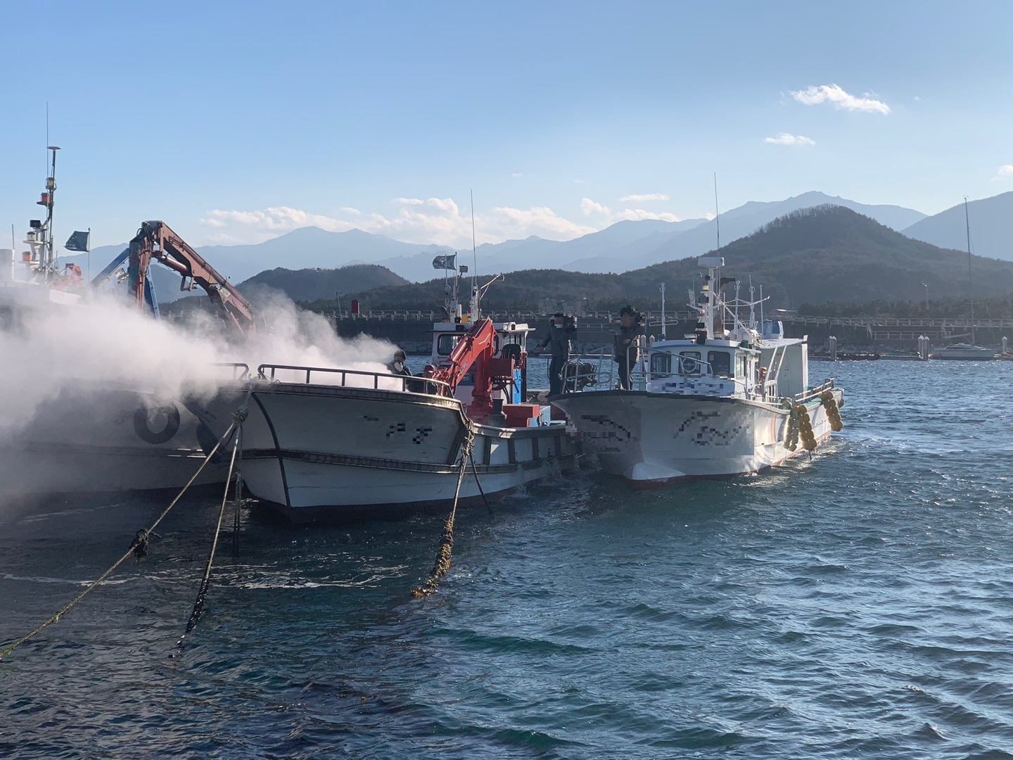 - 연안구조정·경비함정 급파해 소방과 합동 진화, 인명피해 없어 -
