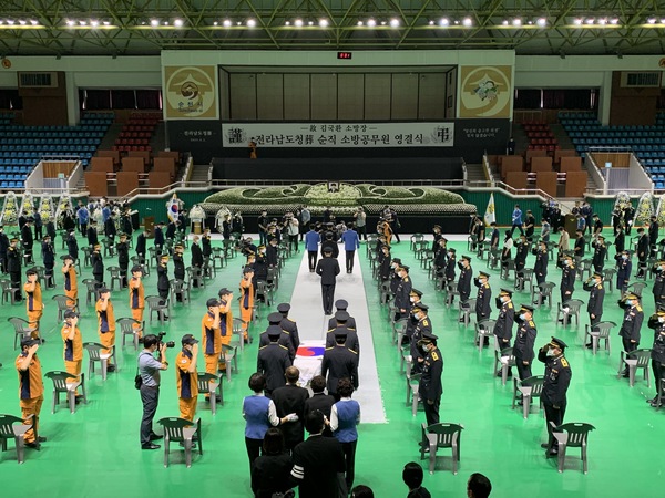 [전남소방]=전남소방본부는 순직한 고 김국환 소방관의 영결식이 2일 전라남도청장(葬)으로 거행됐다고 밝혔다.