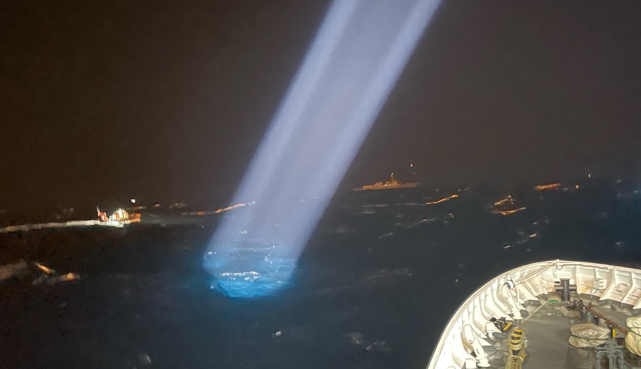 해양경찰은 사고 해역에 조명탄을 투하하고 해양경찰 및 해군 소속 함정과 항공기와 공군 항공기 등이 합동으로 야간수색을 실시하고 있다.