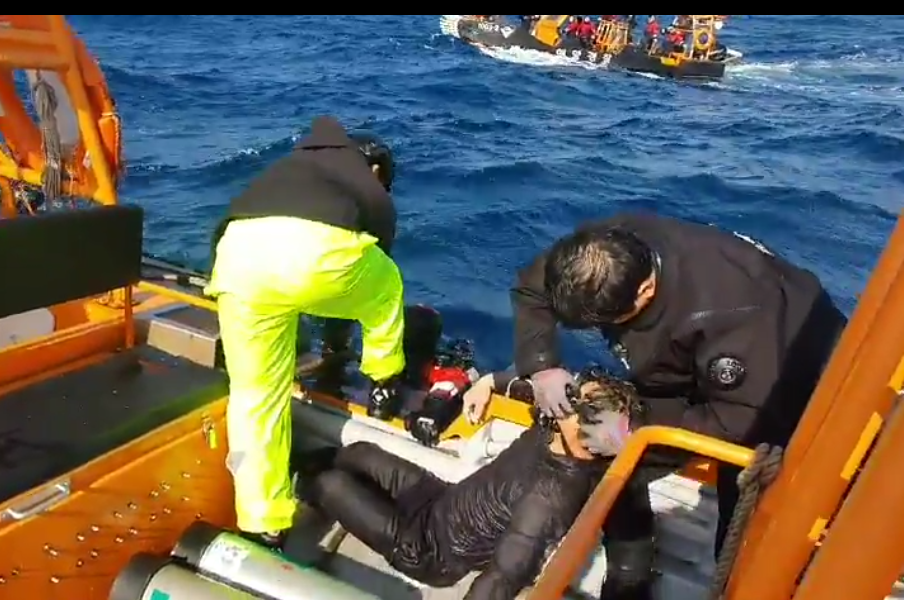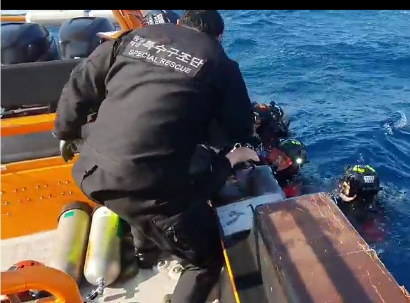 풍랑주의보가 발효돼 높고 거센 파도 속에서도 전복된 어선 내부에 진입해 수색을 벌였다.