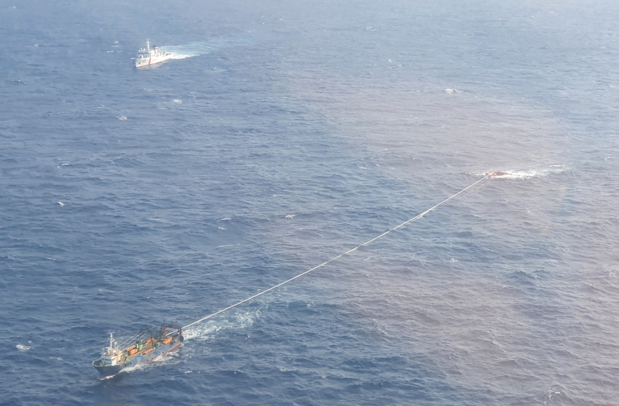 전복선박 A호는 포항시 구룡포항으로[약 74km(40해리)] 예인 예정이다.