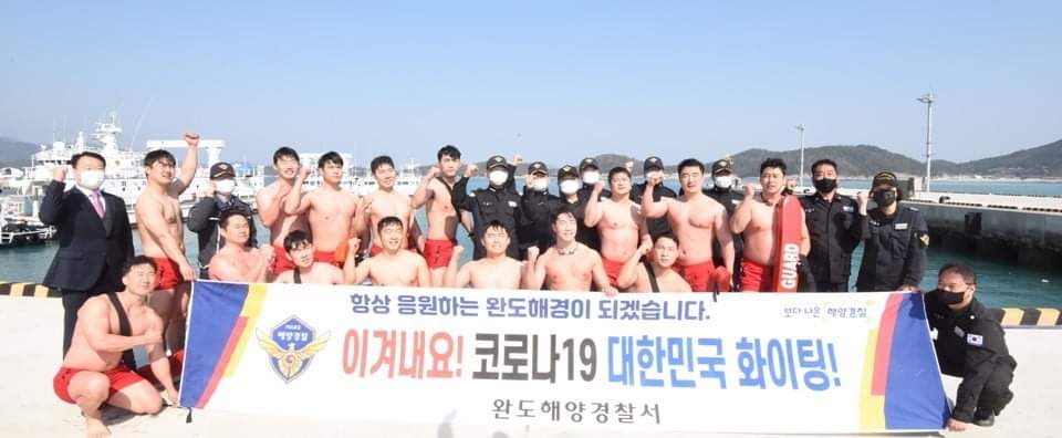 또한 해경구조대원들이 맨몸 바다수영을 하며 강한 파이팅을 외침으로써 코로나19 극복 의지를 보여주었다.