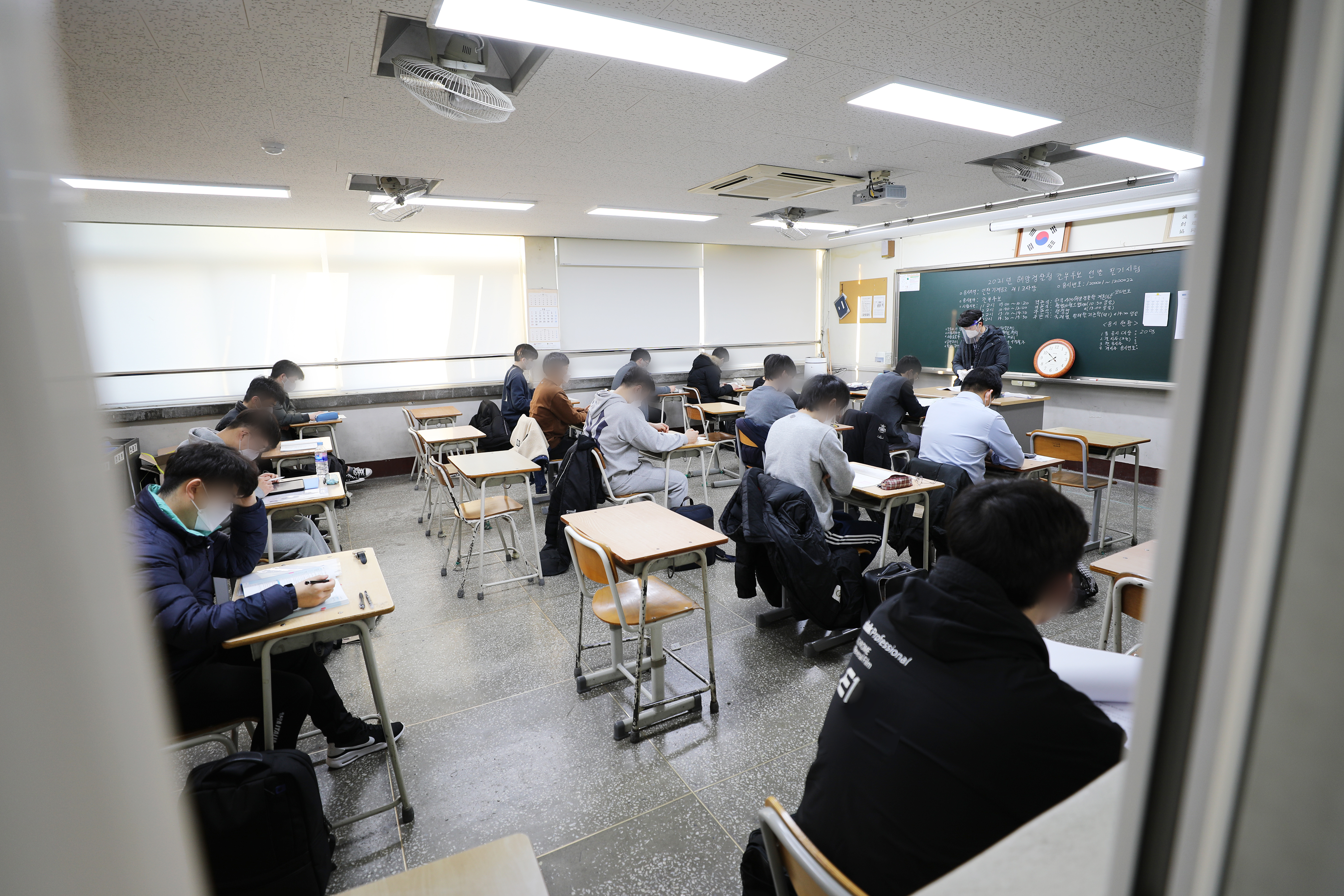 각 시험실(교실)에서는 20명까지 입실하며, 응시자간 상호 2m(최소 1.5m 이상) 간격을 두고 시험을 치르게 되고