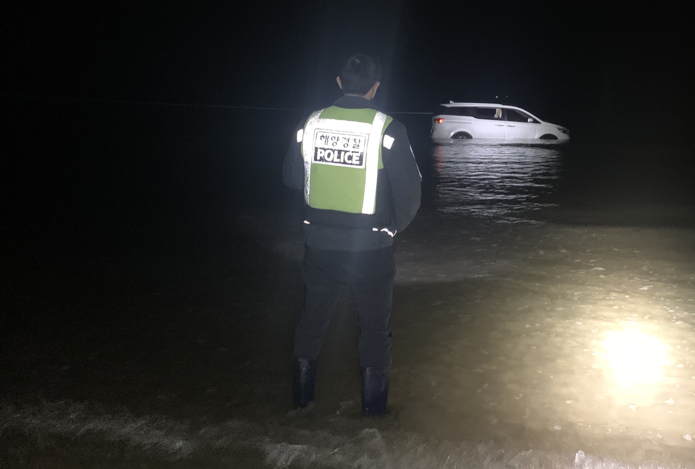 다행히 A씨와 일행들은 모두 빠져 나와 인명피해는 없었지만 차량은 밀물에 완전 침수되는 피해를 입었다.