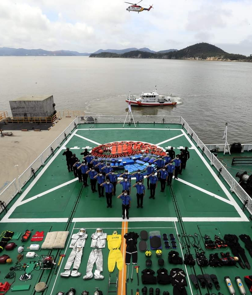 구명조끼 등 인명을 구조하기 위한 장비와 불법 조업을 단속하기 위한 진압 장비 등을 활용하여 최대한 태극기를 형상화함으로써 광복을 위해 힘써온 분들에 대한 감사와 해양경찰의 해양주권 수호를 위한 의지를 다짐해 보는 소중한 시간이었습니다.