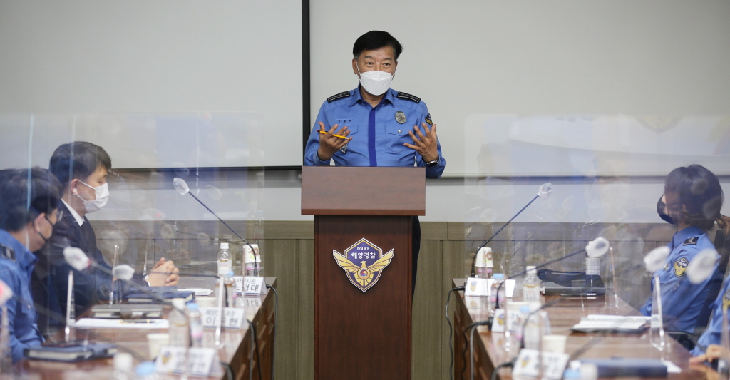 태안해경 일선 근무자들과의 소통간담회 자리에서 김 청장은 “어려운 여건 속에서도 해양치안과 바다주권 확보, 그리고 무엇보다도 국민을 위해 불철주야 수고하는 동료 여러분들 덕분에 늘 감사한 마음”이라며 말문을 연 뒤, “한국판 뉴딜정책과 포스트 코로나로 빠르게 변화하는 시대적 환경에 맞춰 속도감 있는 현장중심 업무추진과 전방위 적극행정 혁신노력을 이어가 당당한 해양경찰로서 각자 맏은 바 최선을 다하자”고 당부의 말을 전했다.