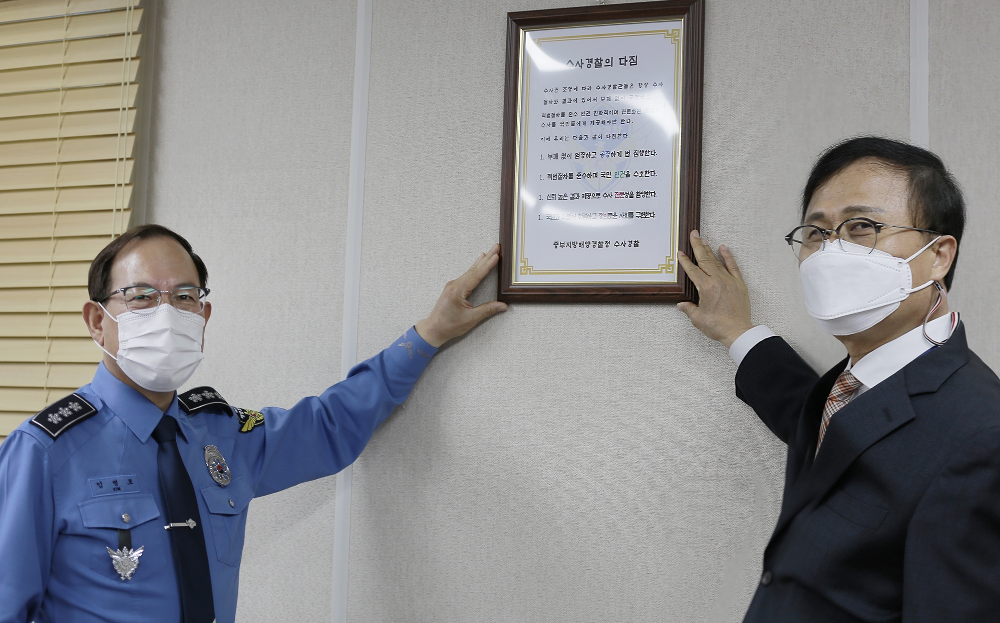 수사권 조정에 따라 해양경찰 수사의 독립성과 책임성이 강화되고 전문성ㆍ공정성 시비 및 인권침해 우려 불식을 위해「수사경찰의 다짐」선언문을 제작ㆍ게시하고, 책임수사 체계 확립을 위한 선포식을 개최하였다고 밝혔다.