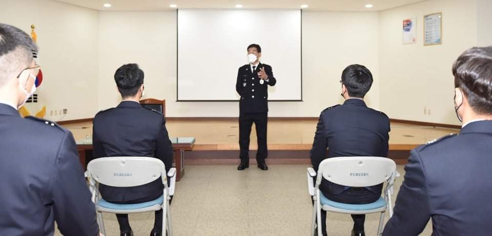 안성식 완도해경서장은“존중, 정의, 소통, 공감의 4대 가치를 실천하여 안전하고 깨끗한 희망의 바다를 지키는 훌륭한 해양경찰이 되어 달라”고 당부했다.