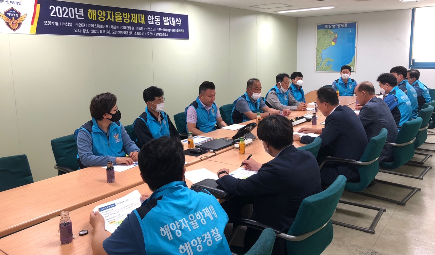 포항해양경찰서는 과할 항포구에 해양오염사고 발생 시 신속한 방제 조치를 위하여 포항신항 및 구항 지역 해양자율방제대 합동 발대식을 8월 5일 개최했다.