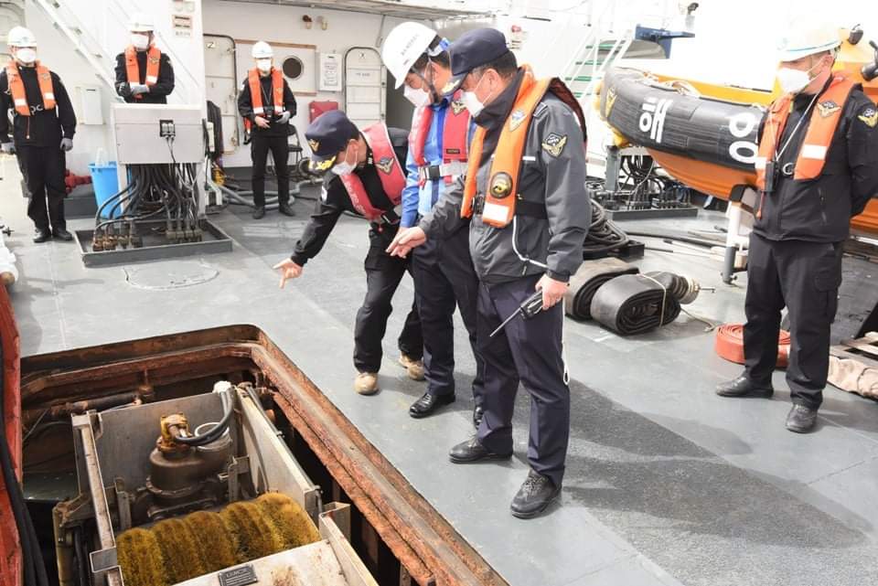 이날 점검은 해양오염사고 예방을 위해 최일선 현장 부서인 방제정을 방문, 코로나19 방역수칙을 철저히 준수하며 △대규모 해양오염사고 대비·대응 태세 점검 △오일펜스, 유회수기 등 방제기자재 상태 점검 △현장대응 부서 애로사항과 건의사항 청취 등 소통의 시간을 가졌다.