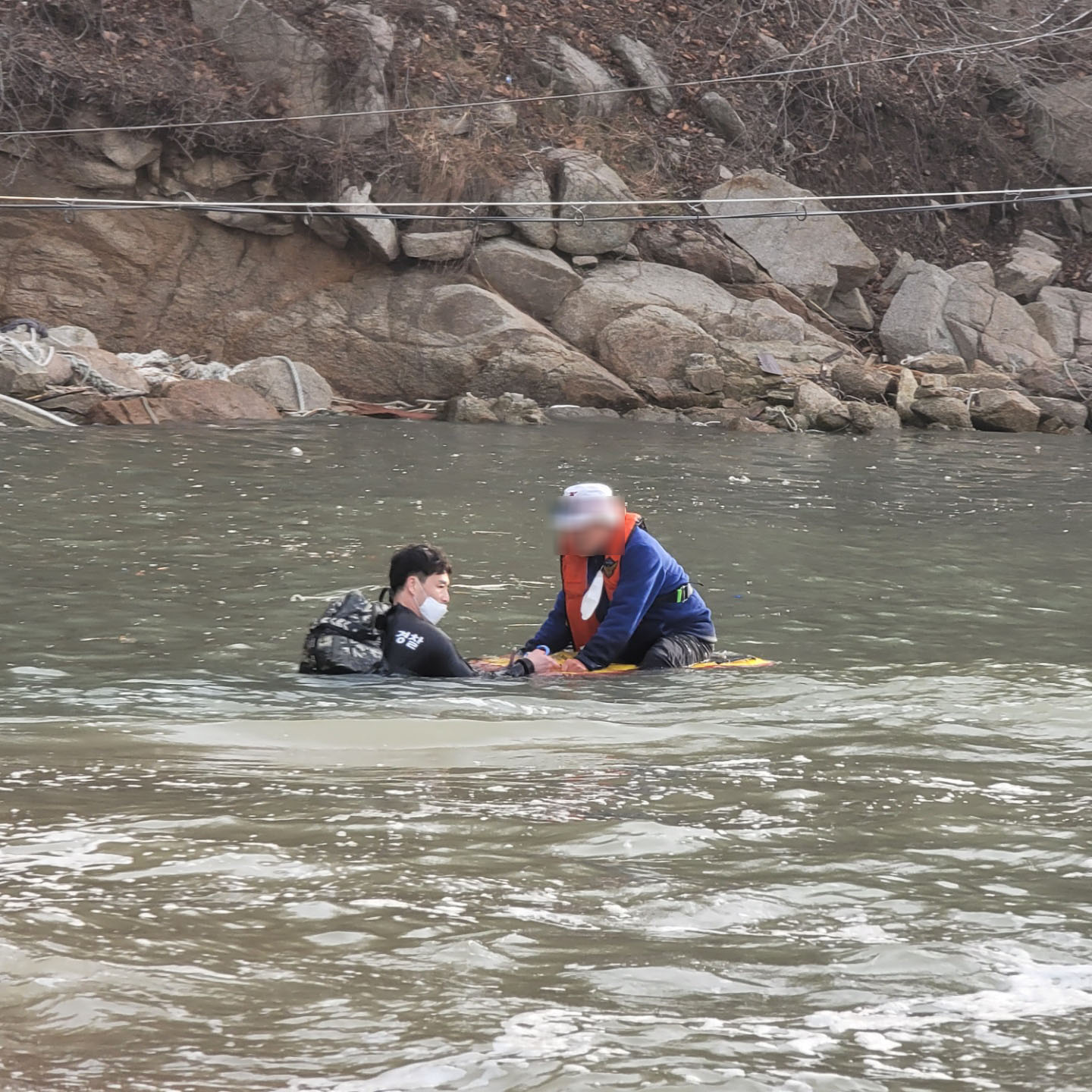 현장에 출동한 순찰팀은 고립자의 위치를 신속하게 파악하고, 해상 입수하여 고립자 A씨(남, 60대)를 서프보드에 편승 무사히 구조했다.