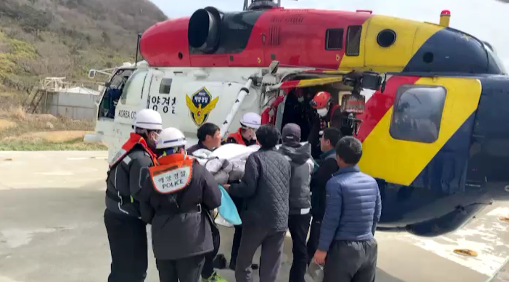 오후 2시 40분경 외연도 헬기 착륙장에 군산항공대 헬기가 도착하였고 환자는 헬기를 이용 전북 소재의 대학병원으로 이송되었다