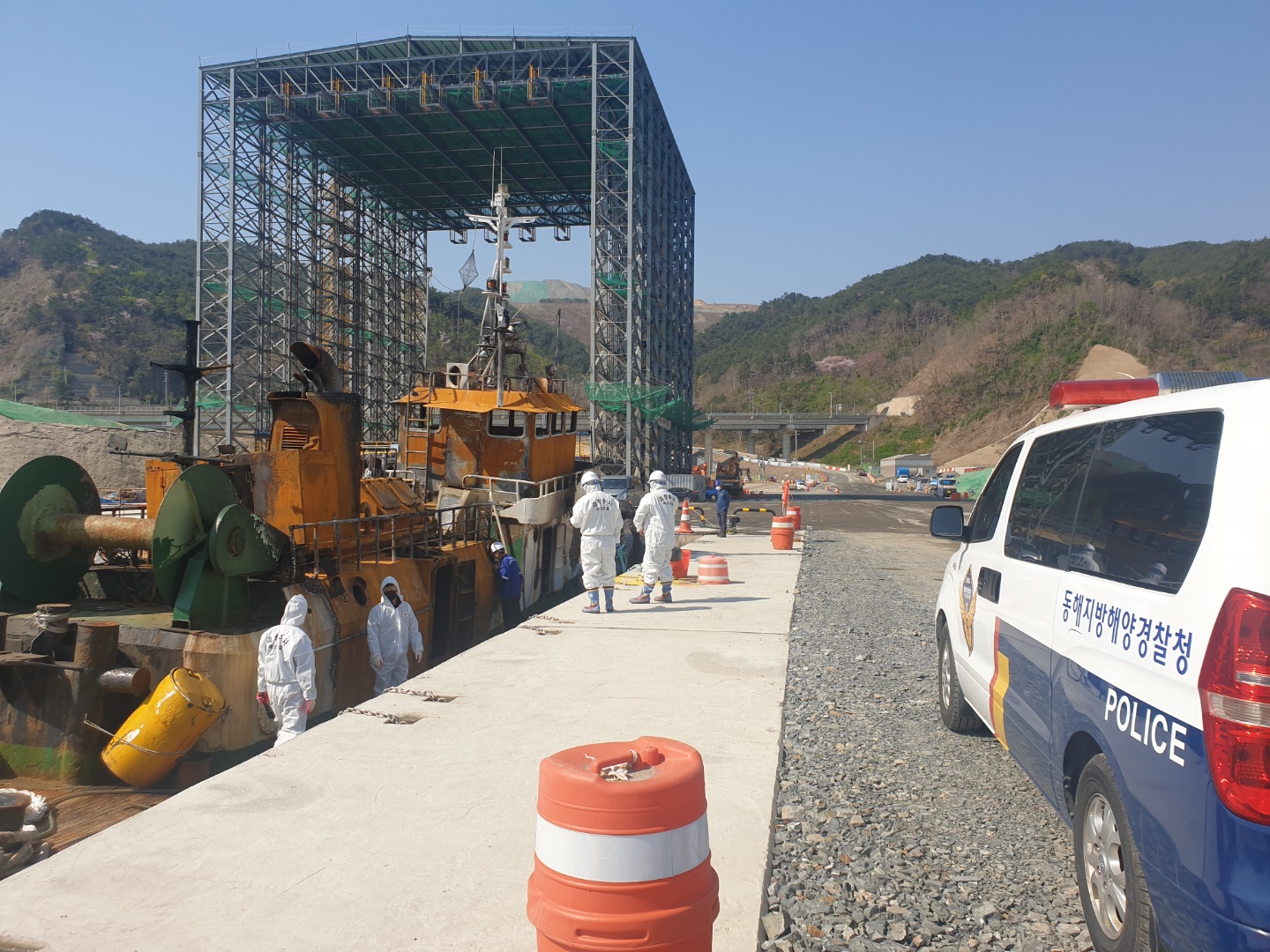 ▲ 현장 합동 감식 중인 동해해경서, 동해해경청 경찰관