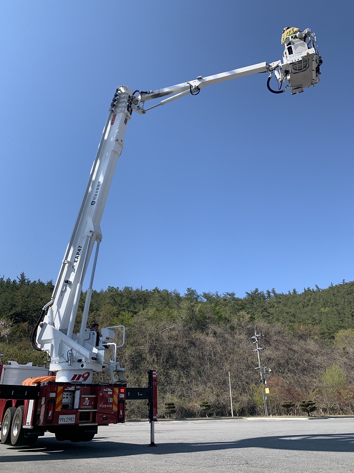 훈련에 사용된 굴절 사다리차는 사다리를 모두 전개했을 때 길이가 47m로 아파트 15층 높이까지 접근하여 화재진압과 인명구조를 동시에 수행할 수 있고 운전자의 원격 조종을 이용하여 무인방수까지 활용할 수 있는 차량으로써, 현재 고흥 관내에는 고흥소방서에 1대가 배치되어 있다.