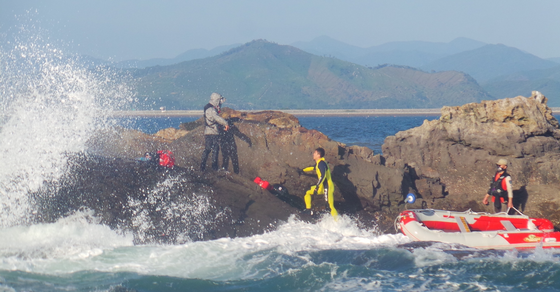 - 물때 왁인 및 구명조끼 착용 등 필수 생명안전수칙 준수 당부 - ▲태안해경이 갯바위에 고립된 60대 낚시...