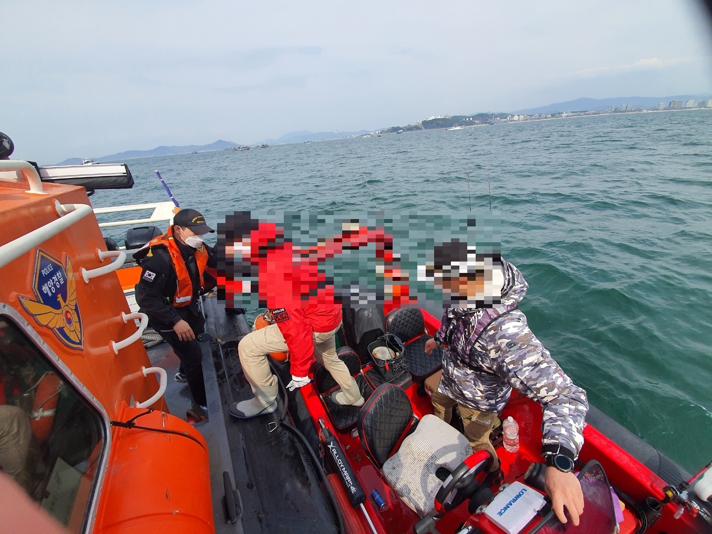 이에 대천파출소 연안구조정과 보령해경구조대가 신고접수 12분만에 침수중인 모터보트에 접근 승선원 2명을 안전하게 구조하였다.