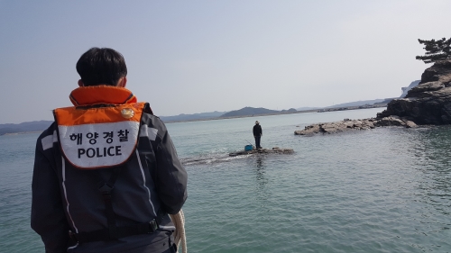 - 물때 왁인 및 구명조끼 착용 등 필수 생명안전수칙 준수 당부 - ▲태안해경이 갯바위에 고립된 60대 낚시...