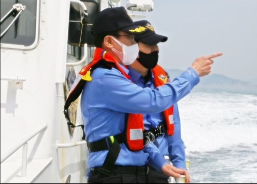 - 최일선 밀입국 등 해상 경계태세 및 취약해역 안전관리 즉응태세 강조 - ▲연안해상 치안순시에 나선 성창현...