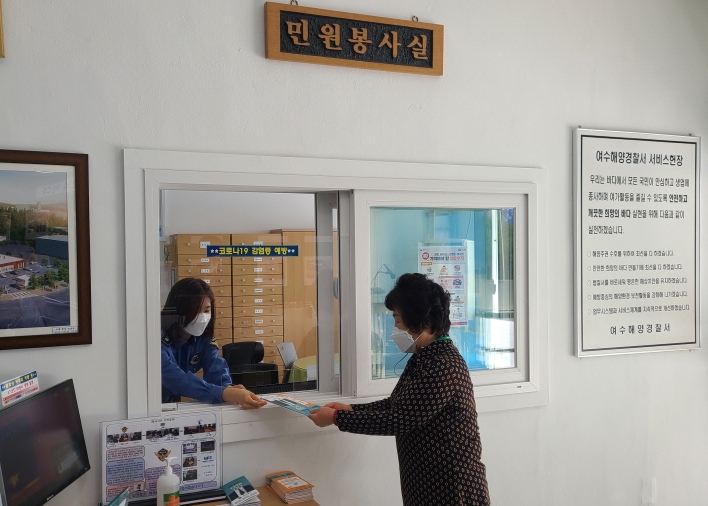 여수해경은 홍보물(리플릿)을 경찰서 민원실과 각 파출소에 비치해 해·수산관련 단체 및 방문 민원인에게 배포하고, 찾아가는 민원·법률 서비스 제공 시 항·포구 주민과 어민을 대상으로 배포할 예정이다.