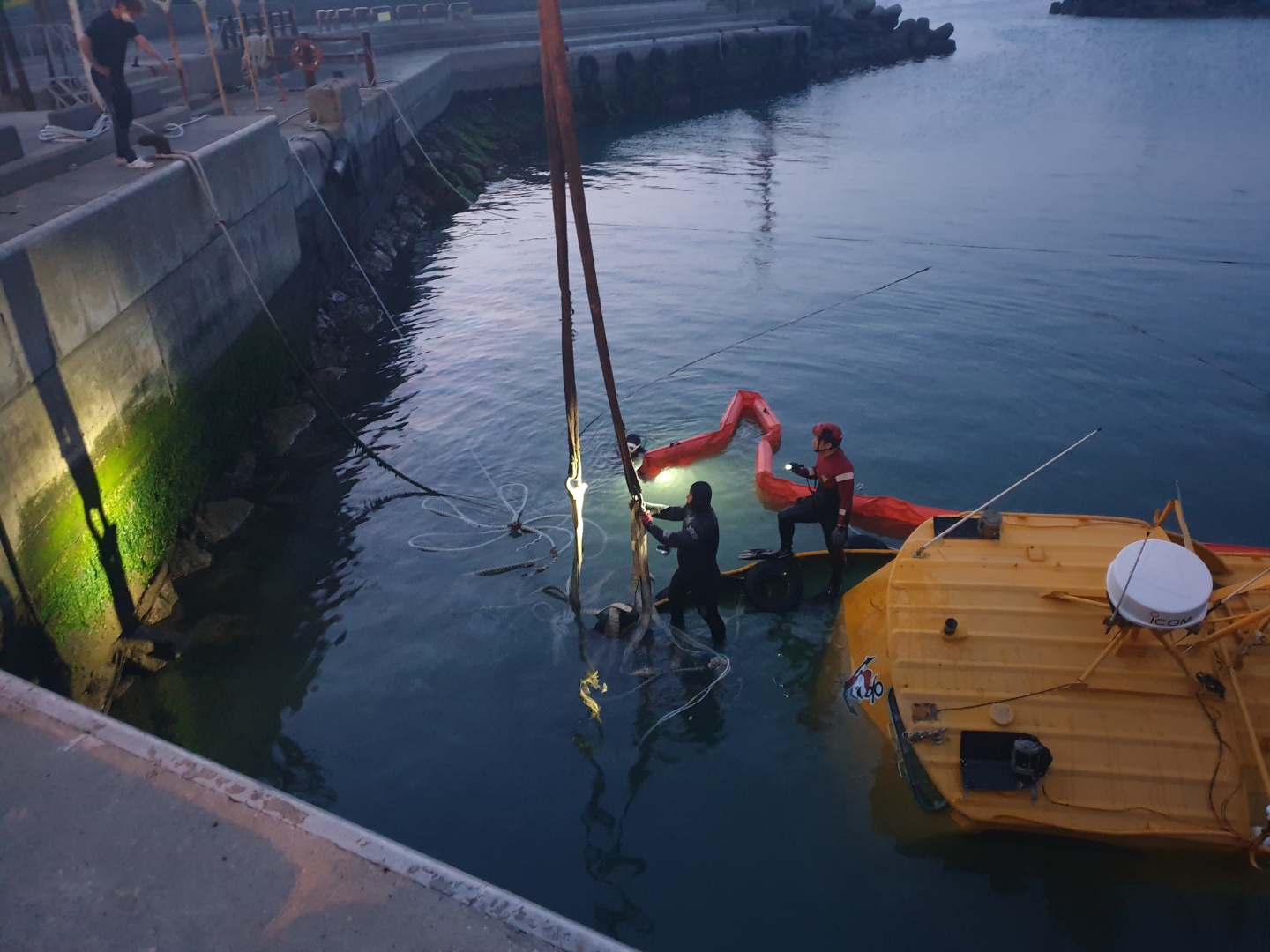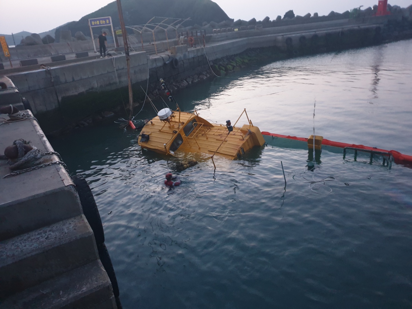 이에 제주해경은 장기계류 선박 A호의 관리인 B씨에게 신속히 침수 사실을 전달하여 육상 인양을 위한 크레인과 민간잠수사를 섭외하고 A호 주변에 해양오염을 막기 위해 오일펜스를 설치하였으며 오후 6시 42분경 도착한 크레인을 이용하여 한경 119센터와 함께 배수 작업을 시행하여 기관실 내 선저폐수 5.4kl를 수거하고 밤 11시 30분경 육상 안전지대로 인양 완료하였다.