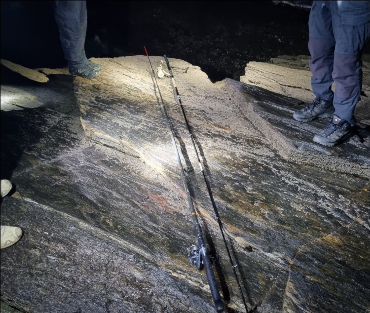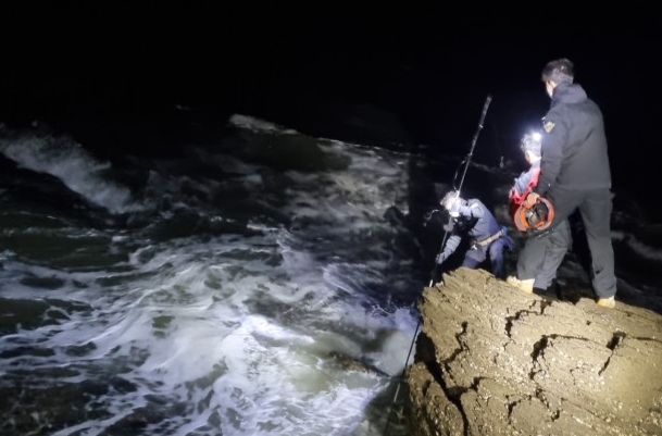 ▲홀로 갯바위 낚시 나섰다 연락두절된 50대 A씨 것으로 추정되는 낚시대를 발견한 태안해경이 수거하고 있다. /출처=태안해양경찰서
