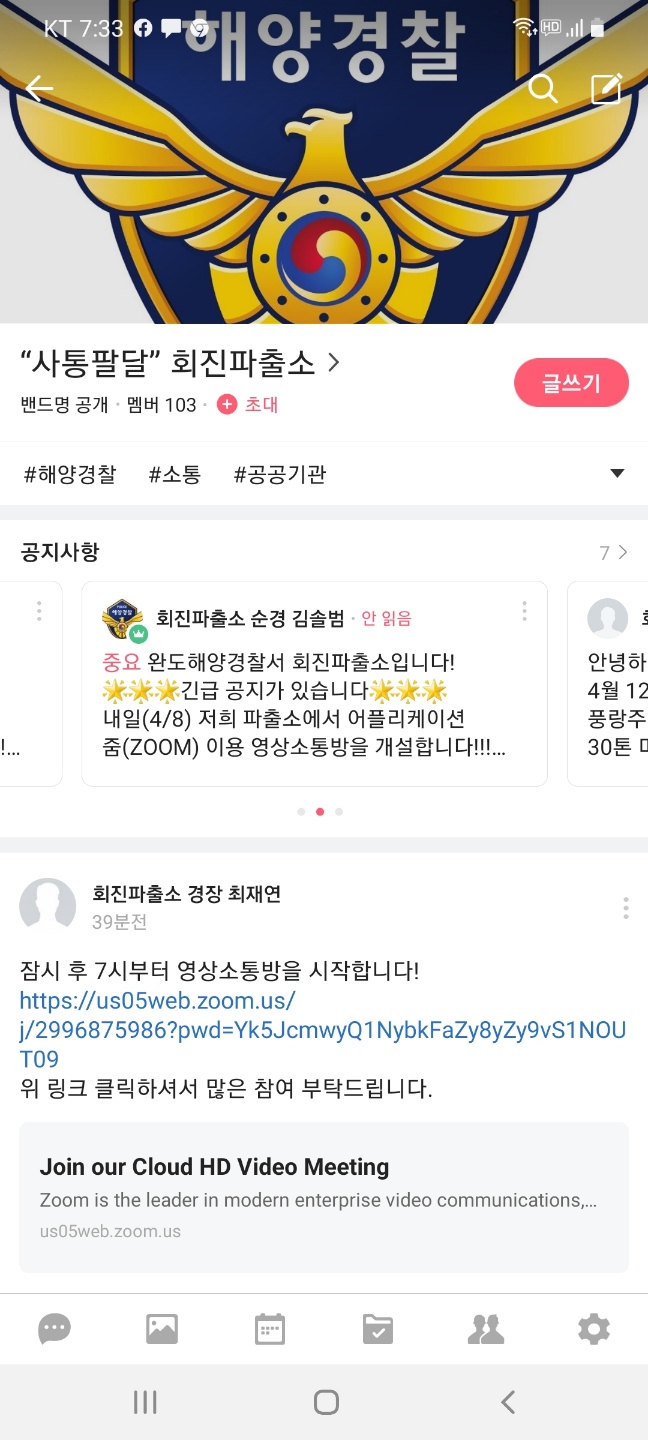 노력도 에서 미역 양식을 하고 있는 김동환어촌계장은 영상 통화로 가까우면서도 멀게만 느껴진 해경과 어려움을 함께 나누며 해결 방안을 모색 할 수 있었서 좋았다며,주위 분들에게 밴드 초대를 하는 중 이라고 했다