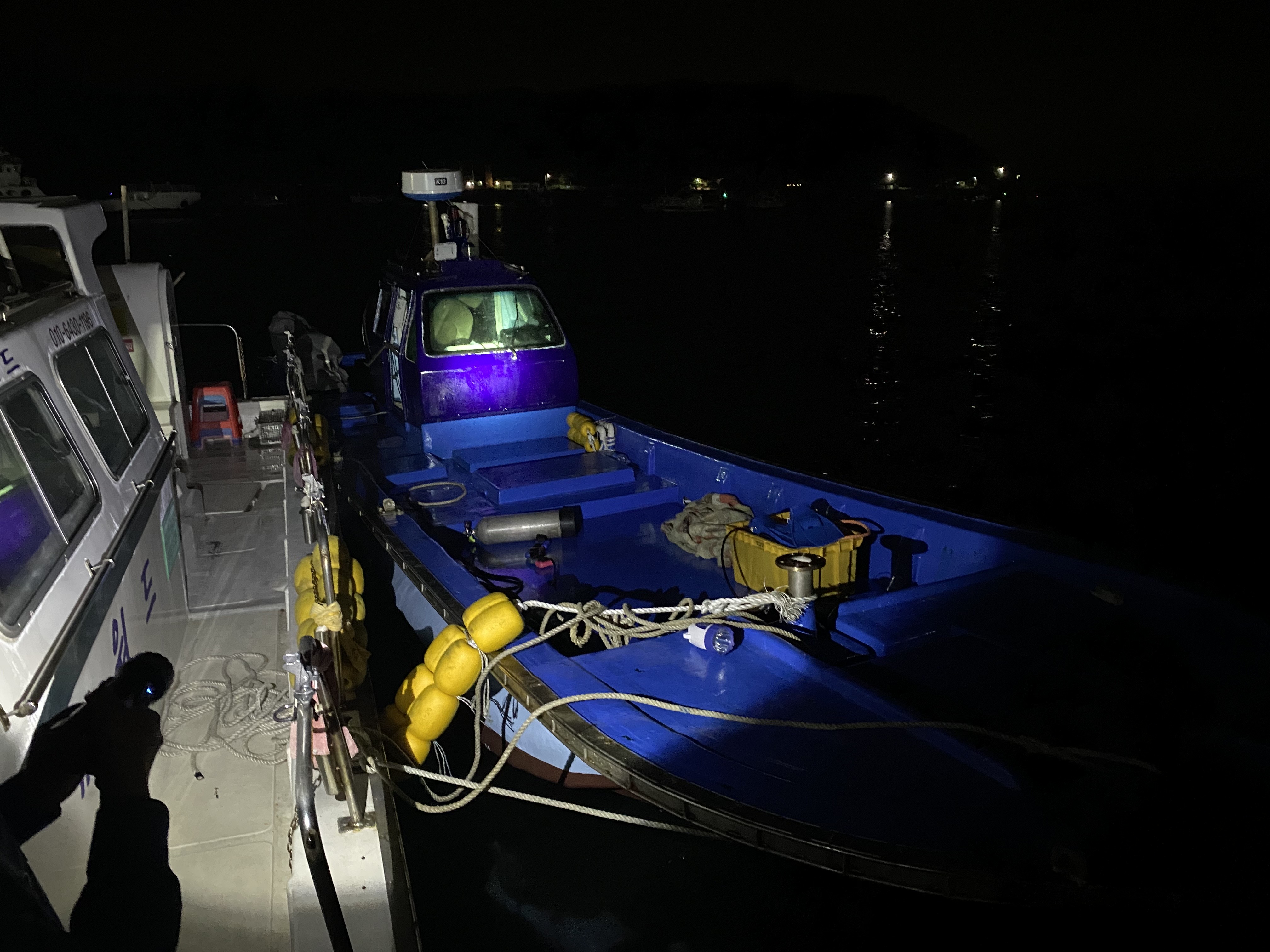 등선당시 선박에는 남자 선원 2명이 승선하고 있었으며 잠시 후 해상에서 잠수부 1명이 올라와 총 3명의 선원의 신원과 선박확인을 했다.