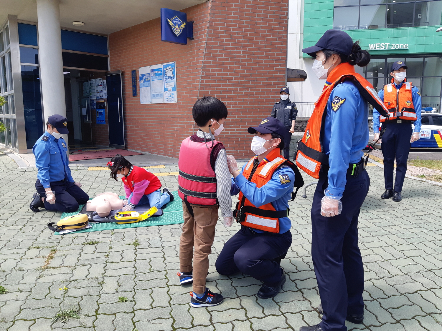 특히, 어린이 행락객을 대상으로 구명조끼 착용법과 심폐소생술 및 *AED를 직접 체험하면서 안전의 중요성을 인식하는 유용한 교육이 되었다.