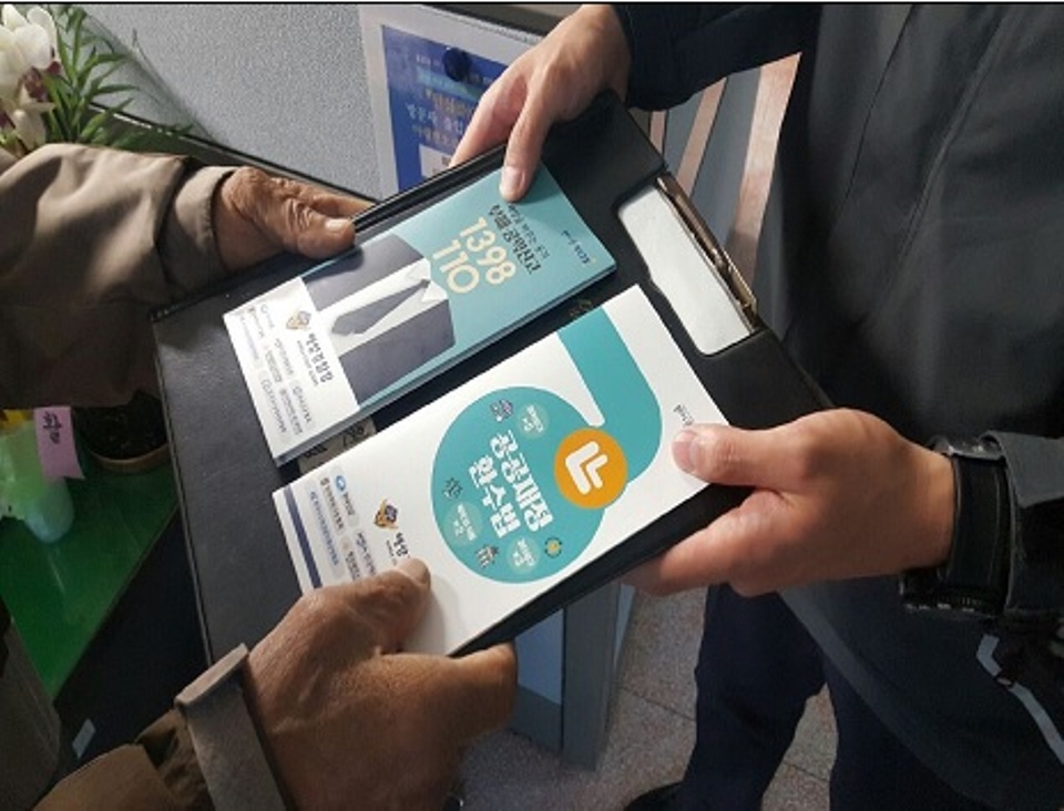 완도해경은 리플렛을 경찰서 민원실과 현장부서 등 각 파출소에 비치하고 순찰 활동 중 주민과 어민들에게 배포하여 알리고 있다.