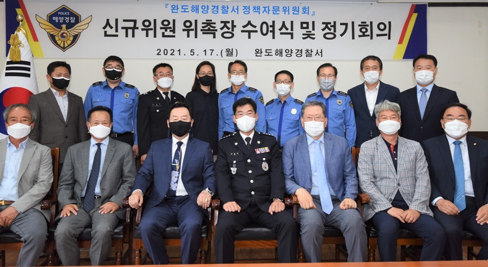 이번 정책자문위원회는 코로나19 방역수칙을 철저히 준수한 가운데 진행하였으며, 서장을 비롯한 각 과장과 정책자문위원장을 포함한 간부진 등 17명 참석과 신규 위원으로는 전이양 완도대성병원장과 김성 완도수산고등학교장이 선임되었다.